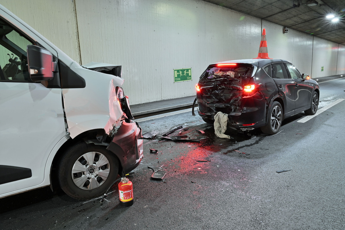 Auf der Autobahn A2 in Fahrtrichtung Norden geriet der Verkehr am Donnerstag (31. Juli 2025, kurz nach 16:00 Uhr) ins Stocken. Ein Autofahrer musste deshalb bis zum Stillstand abbremsen. Mehrere nachfolgende Fahrzeuge konnten nicht mehr rechtzeitig anhalten. Es kam zu einer Auffahrkollision mit insgesamt fünf beteiligten Fahrzeugen. Nach der Kollision begann der involvierte Lieferwagen zudem zu brennen.