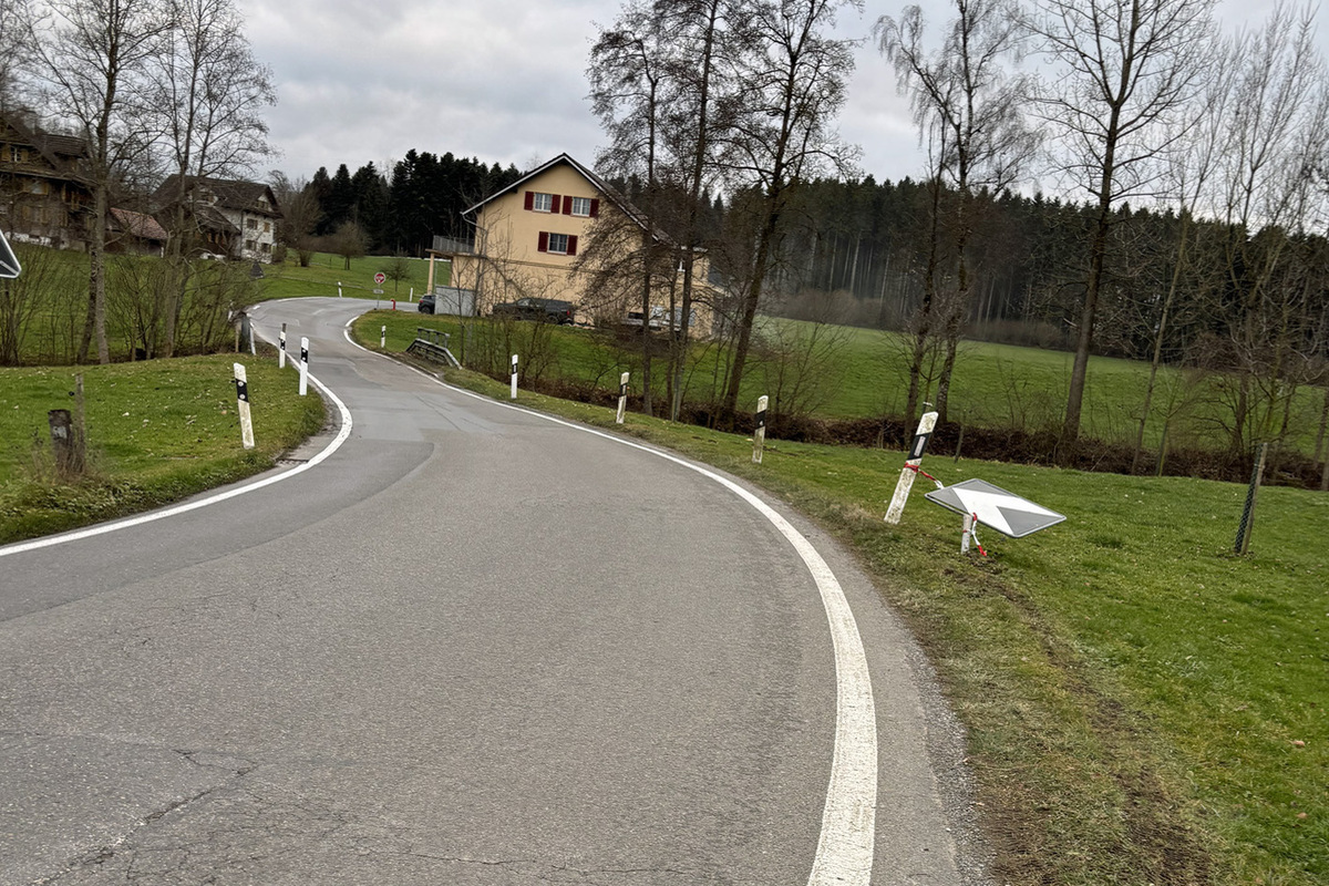Auf der Rainstrasse in Richtung Rain kollidierte ein unbekannter Personenwagen aus Richtung Urswil herkommend in der Kurve vor der Kreuzung Sage – Chlewaldstrasse im Bereich der Liegenschaft Oberotige massiv mit einer Kurventafel sowie einem Leitpfosten.