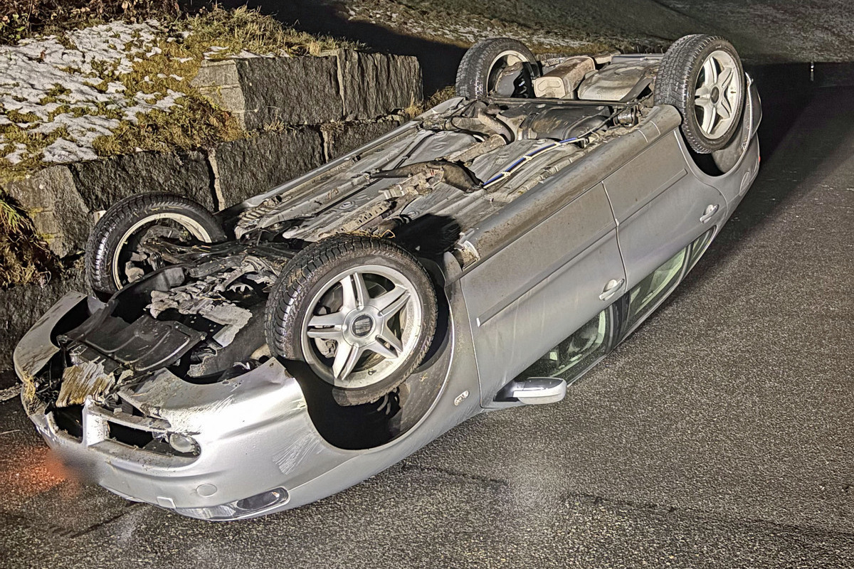 Im Gebiet Kohlrüti kollidierte das Fahrzeug mit der rechtsseitigen Steinmauer, kippte und kam auf dem Dach liegend zum Stillstand. Der Autofahrer blieb unverletzt.