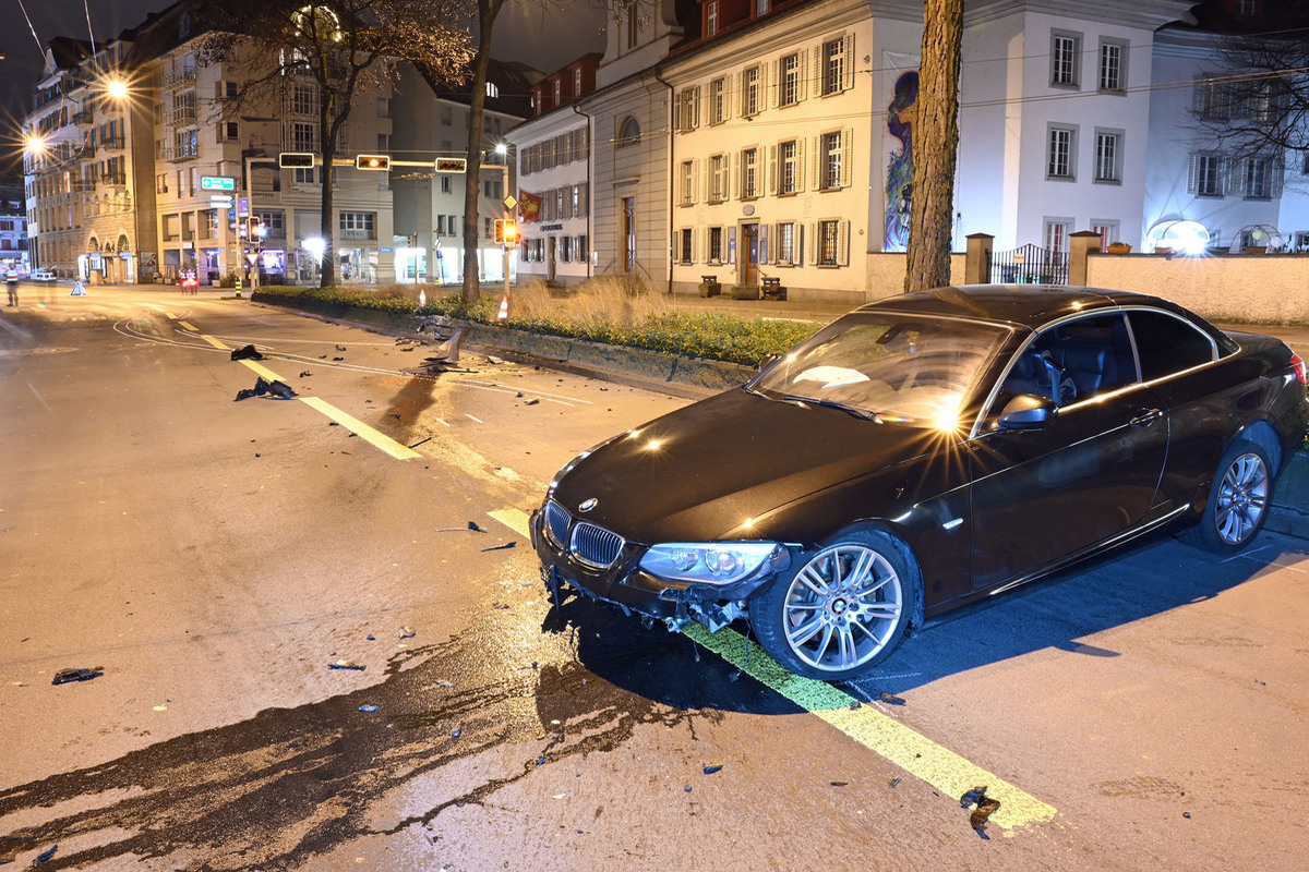 Am Sonntagabend (28. Dezember 2025, kurz nach 22:00 Uhr) bog ein Autofahrer von der Gütschstrasse nach rechts in die Baselstrasse ein. Dabei verlor er die Kontrolle über sein Fahrzeug und prallte gegen die Mauer der dortigen Rabatte. In der Folge drehte sich das Auto und kollidierte erneut mit einer Rabattenmauer, bevor es zum Stillstand kam. Verletzt wurde niemand.