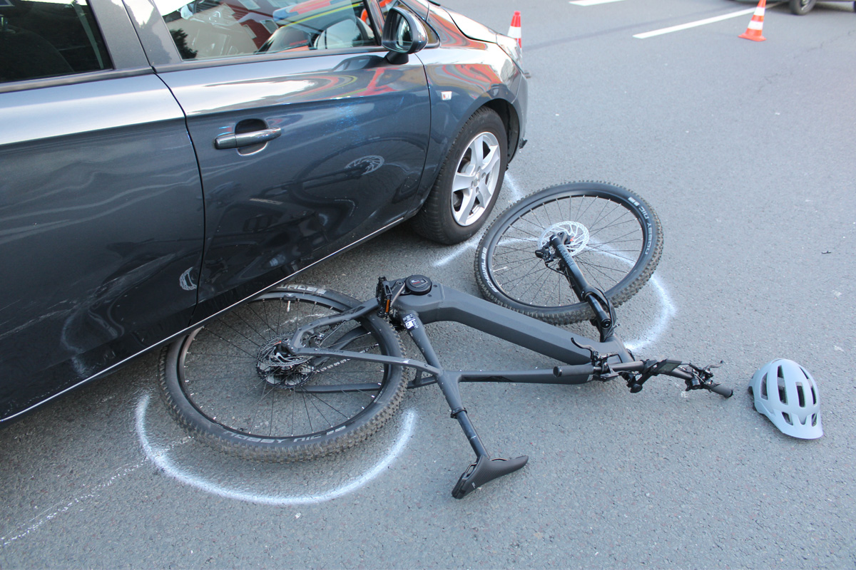Als der Velofahrer auf die Dorfstrasse einbog, kollidierte er mit einem Auto, welches auf der Dorfstrasse unterwegs war.